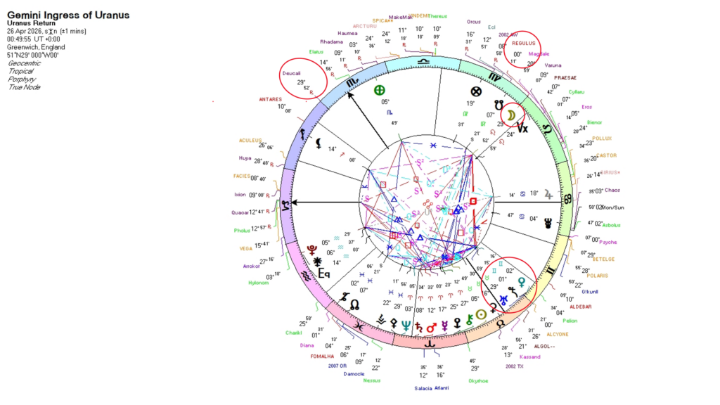 As Uranus steps over the threshold of Gemini on the 26th of April (UT) this switches everything into a much higher gear. Pluto in AQU, transforming science, politics, people’s rights, Neptune in Aries, the cardinal fire sign, spiritualizing the will, manifesting our dreams, and Uranus in GEM, the awakening of the mind. This triad of outer planets spanning 120 degrees of the circle which equals a third, a very harmonising number, is in and of itself opening a dam.
